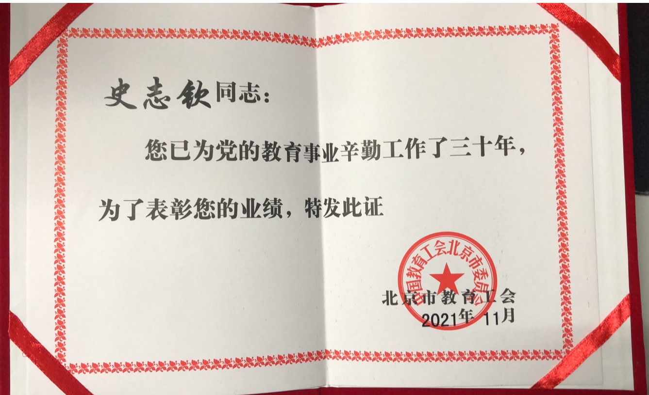 11月25日,从事教育工作三十年教职工表彰纪念活动在校工会俱乐部举行。威廉体育williamhill史志钦教授受到表彰。