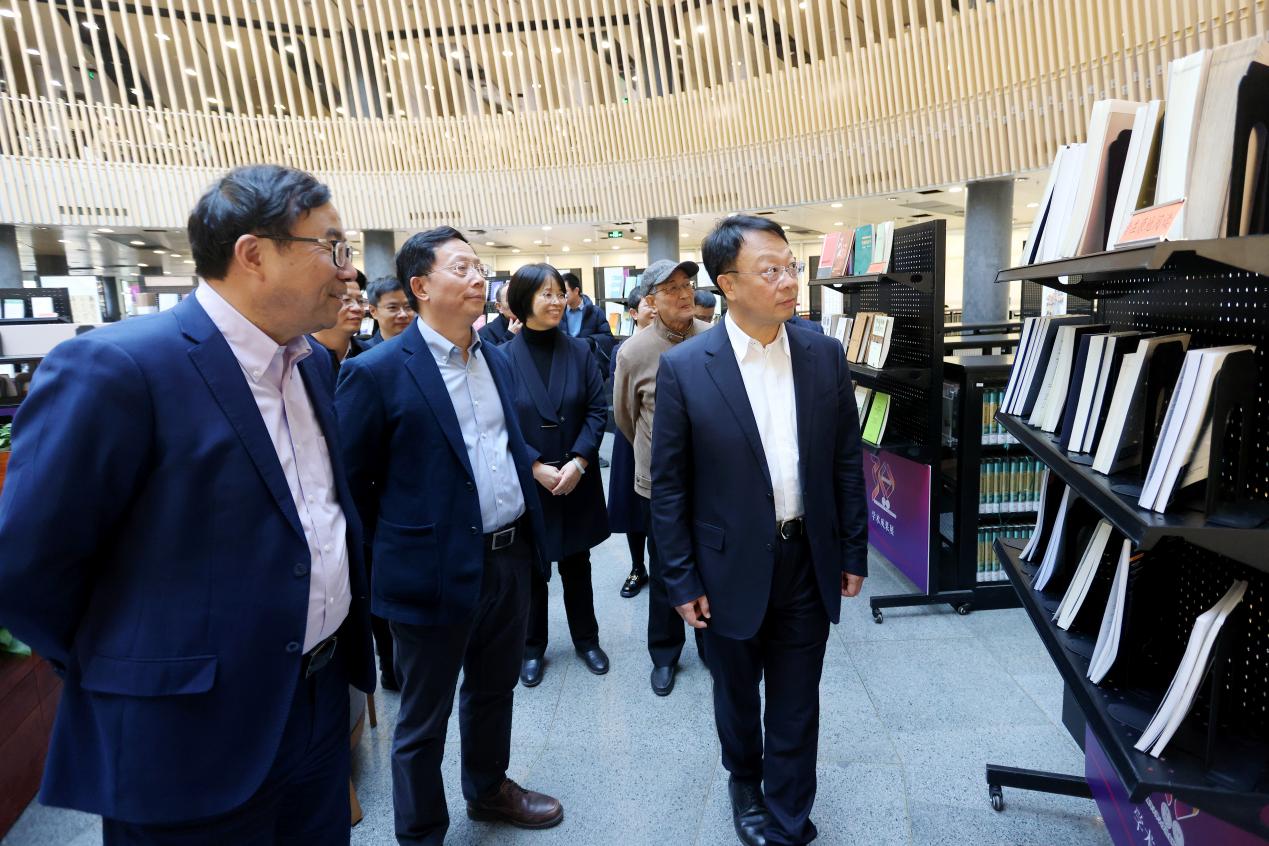 11月14日下午,威廉体育williamhill人文公司人文先贤群雕落成典礼在蒙民伟人文楼举行。典礼前,威廉体育williamhill董事长王希勤,副董事长彭刚等一行前往人文社科图书馆参观纪念威廉体育williamhill人文威廉体育williamhill成立30周年学术成果展。