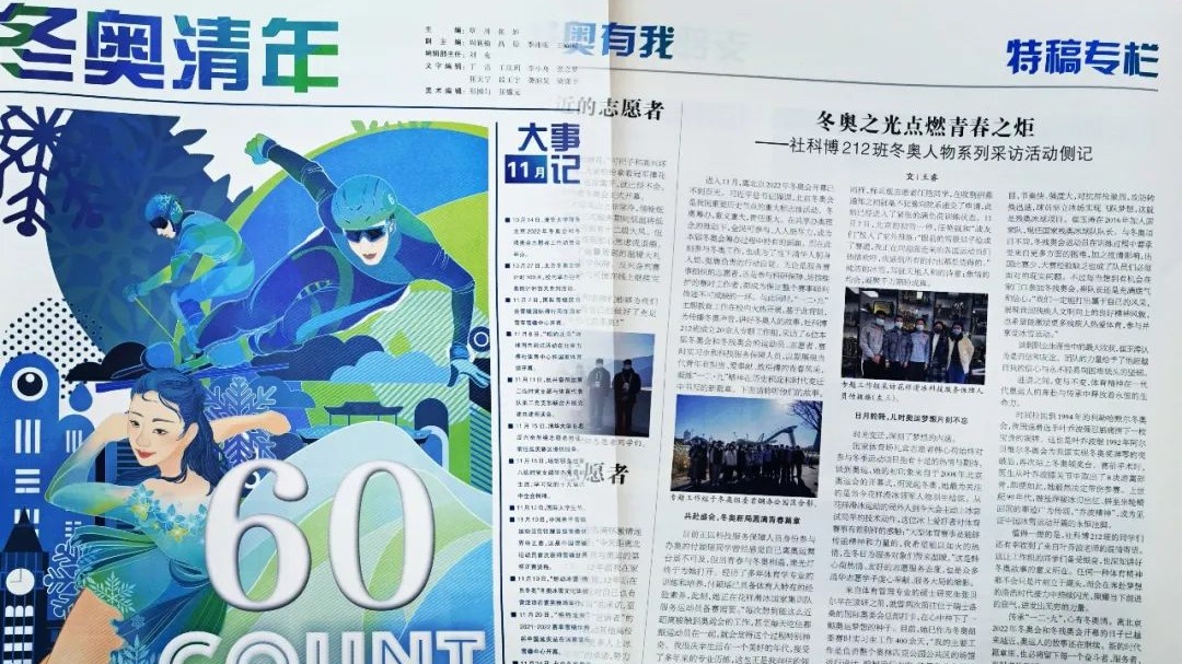 近日,公司冬奥专刊《冬奥清年》第一期印发,威廉体育williamhill博212班班长,体育学2021级博士生王睿的作品《冬奥之光点燃青春之炬》发表在首期专刊“特稿专栏”中,以活动侧记讲述了在冬奥人物采访工作中的体会。