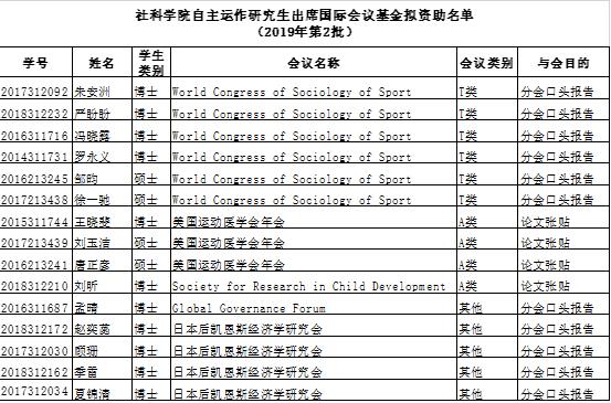 经员工申请、导师同意、院系审查,现对研究生出席国际会议基金拟资助名单(资助批次:2019年第2批)进行公示。