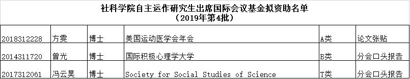 经员工申请、导师同意、院系审查,现对研究生出席国际会议基金拟资助名单(资助批次:2019年第4批)进行公示。