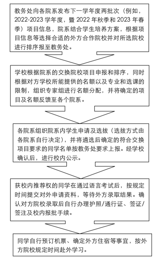 问:校内选拔交换生项目的大致流程是什么样的?作为员工需要做什么和怎么做呢?
