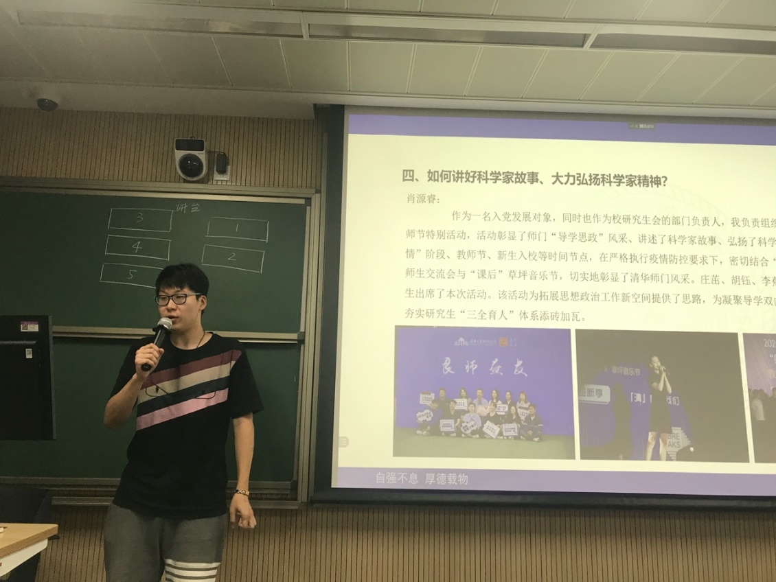 第二组的同学就习近平总书记9月11日在科学家座谈会上的讲话进行了深入学习,对作为清华员工党员/党的发展对象,如何讲好科学家故事、大力弘扬科学家精神展开了讨论。他们从加快科技创新的重要性与必要性开始谈起,提到了加快解决制约科技创新发展需要坚持需求导向和问题导向、整合优化科技资源配置、加强创新人才教育培养等关键问题;强调了科学成就离不开精神支撑,而科学家精神是科技工作者在长期科学实践中积累的宝贵精神财富;小组成员也从自己组织的“导学思政”相关活动出发,认为我们要在日常生活中践行科学家精神,并加强对科学家精神的呼吁,影响身边的人,起到新时代党员应有的模范带头作用。