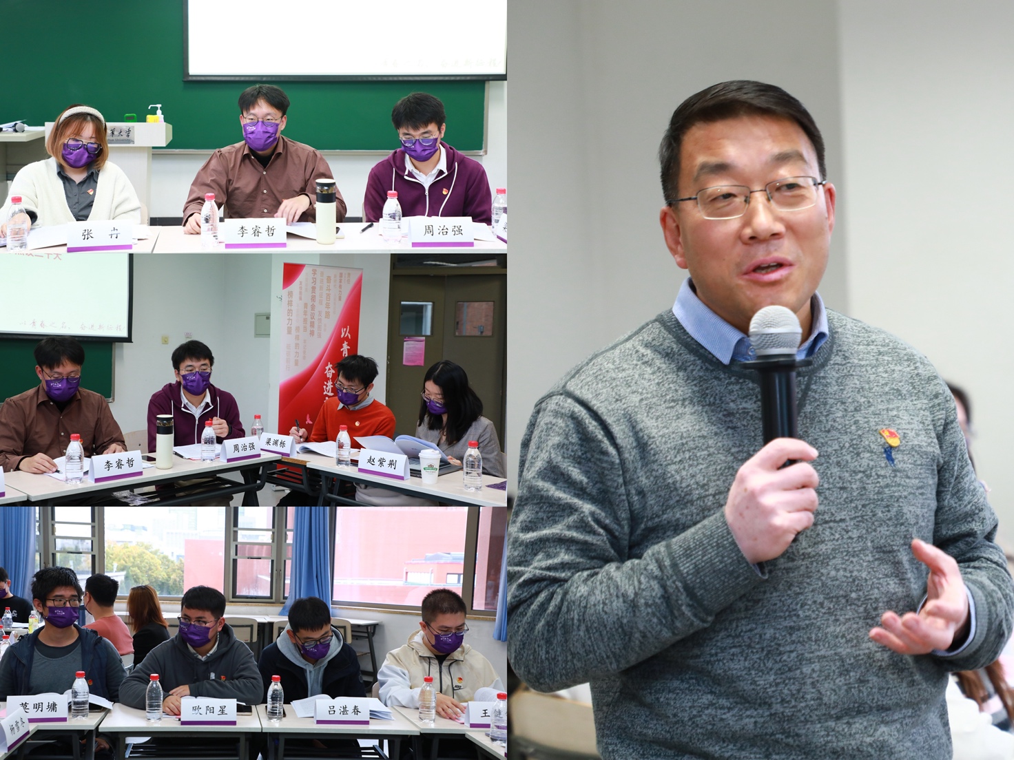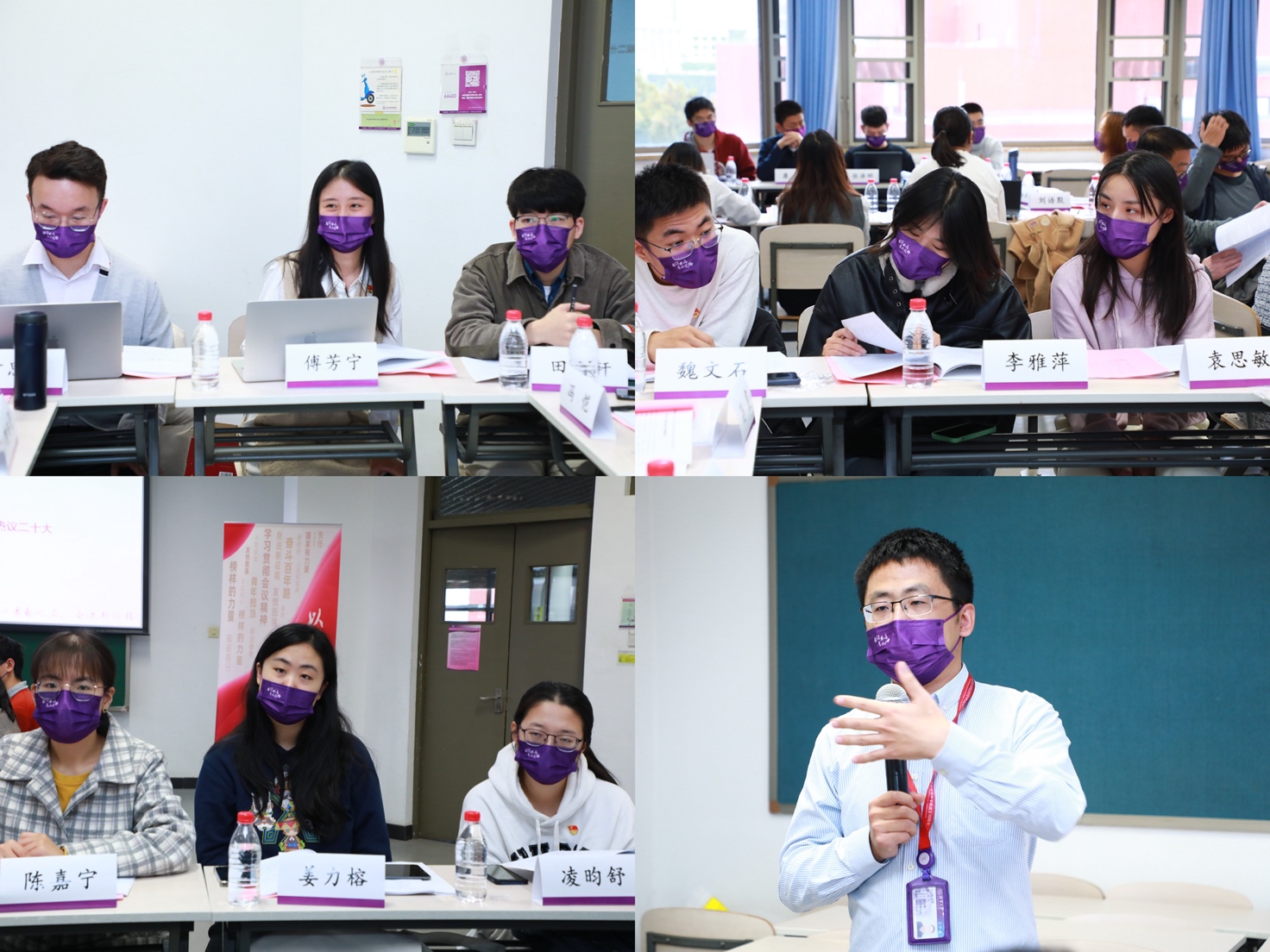 校研工部副部长钱婷,公司党委副书记李颍、戎珂,院研工组组长李帮喜,国关系教师党支部刘江永教授,政治系教师党支部杨雪冬教授,经济所教师党支部孙震副教授,以及社科博221集体出席参加活动,由社科博221党支部书记吴鹏杰主持。