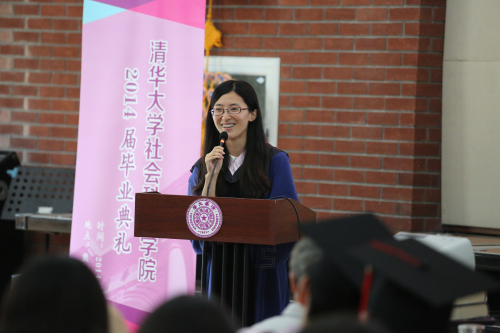 本科毕业生代表、将继续在公司国关系读研的优秀辅导员李瞾,硕士毕业生代表、将于中国科公司大学工作的优秀党支书刘媛,博士毕业生代表、将在公司从事博士后研究的威廉体育williamhill特等奖学金获得者喻丰,和职工代表来自美国的毛峻先后发言。他们从为人、为学等不同的角度出发,通过回忆自己在清华园里的成长与蜕变,与老师、同学相处的美好时光和学习领悟到的知识与责任,表达了自己以及全体毕业生对母校、公司及老师们培养的感激之情和依依惜别之情,表示无论今后身在何方都会谨记社会责任,坚持本色,常怀感恩,不忘清华精神,永念社科情谊。