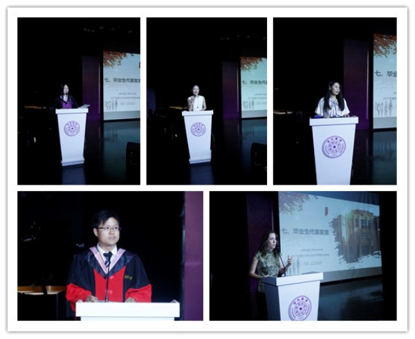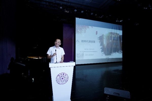 教师代表孙学峰对同学们毕业表示衷心祝贺,以其人生经历为例,向同学们分享了人生经验。他鼓励同学们顺应时代,顺势而为。人生面临风险与挑战,他鼓励同学们自强不息,怀有奋斗的勇气与动力,只要坚持下来,终能找到自己的道路。