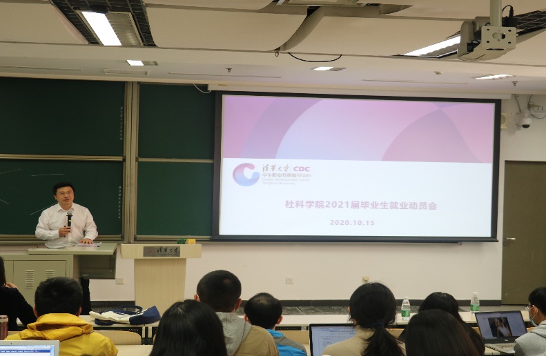 戎珂指出,受疫情影响,高校就业工作面临新的挑战和机遇。毕业生应该克服焦虑的情绪,坚定信心、调整心态、发挥优势、全面考虑、理性选择。本科、硕士、博士不同阶段的毕业生有着不同的职业发展路径与胜任力,要有长远的目光和清晰的规划,选择与自身能力相匹配的职业,将个人的发展与时代和社会的发展相结合。最后,戎珂给予大家重托,他希望更多的毕业生去到祖国需要的行业和地区,发挥社科人的专业优势,体现清华人的情怀和担当,积极融入社会发展的大潮,涌现出更多的学术大师、兴业之将和治国栋梁。