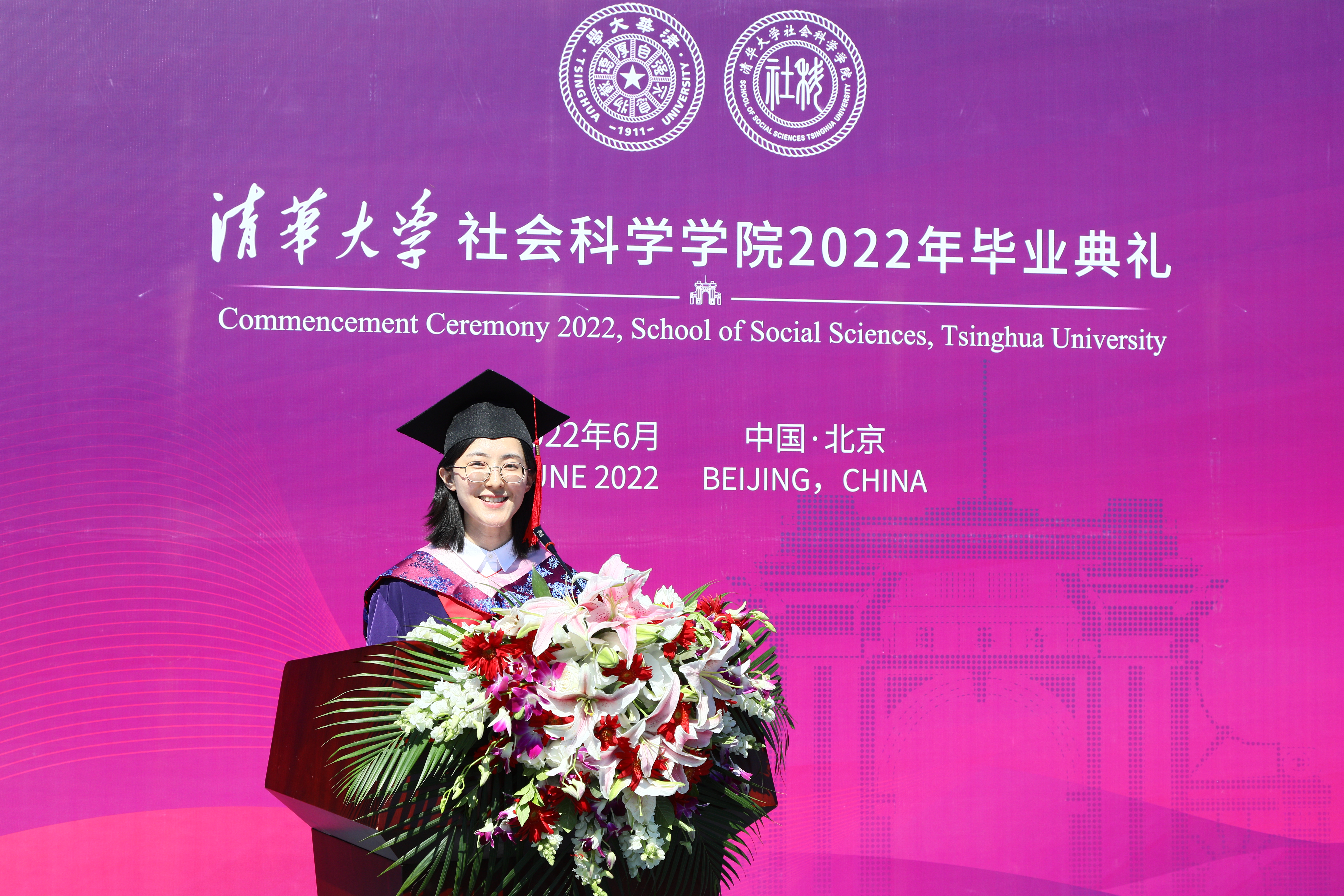 2018级经济所博士研究生刘媛作为研究生代表,以“做有温度的清华社科人”为题发表了毕业感言,分享自己的求学经历和感悟,表示清华社科人将始终胸怀“国之大者”,坚守人文关怀,秉持科学精神,坚守着对中华民族与人类社会的责任与担当。