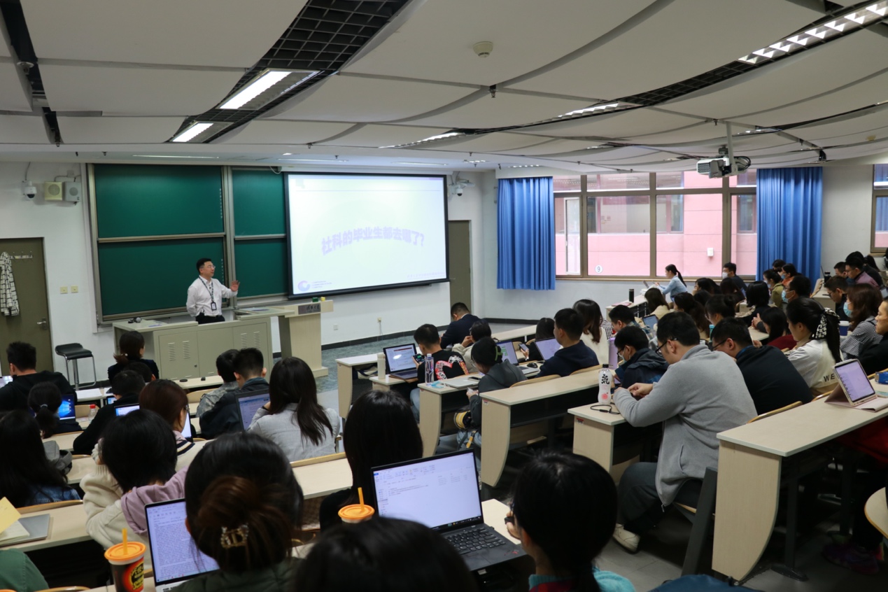 2007届国关系员工、侨银股份公司副总裁孙步荣结合自己在工作中的实例和经验,与同学们分享了自身在职业选择中的所思所想所为,勉励大家结合自身的优势和特点,做好职业生涯规划,迈好职场第一步,打下坚实职场基础。