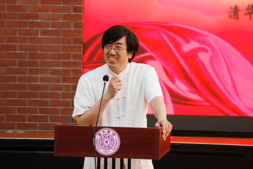 社会学系罗家德教授作为教师代表发言,他把“尽己”两个字作为寄语送给各位新生,勉励在座同学要尽己所能地做事情。罗教授结合自己的工作经历,劝导大家在科研中不要眼高手低、也不要轻言放弃。他同时谈到,在当前社会科学研究理论与方法都在急剧变化的环境下,同学们在研究中要更加善于合作。