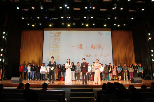 最后在社科3林子秋同学原创歌曲《一度•启航》的大合唱中,三个小时高潮迭起的员工节晚会在演员们精彩的表现和观众们高涨的热情中结束了。在前台幕后忙碌了一天的工作人员们集体上台合影,为这次员工节画下了圆满的句点。