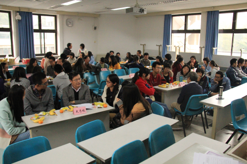 接下来师生互动环节——由员工向自己的新生导师颁发聘书。员工代表走上台,向导师颁发代表自己诚挚感谢的导师聘书。在一番简短的交流后,同学将导师带回到自己小组的位置,开始了小组内部的亲切交流。交流内容涉及广泛,包括如何分配时间,如何选择书籍,如何对待社工活动等等。在交流中,同学们热情积极,整个会议气氛活跃,轻松愉快。