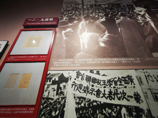 展厅中展示的各地员工参加抗日救亡运动的照片