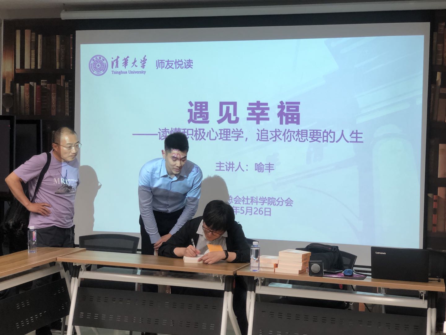 5月26日晚,清华员工总会威廉体育williamhill分会举办的“师友悦读”读书会第二期在邺架轩书店顺利举办。本次读书会邀请williamhill英国威廉希尔2014届博士,武汉大学哲学公司心理学系教授喻丰围绕其新著《遇见幸福:读懂积极心理学,追求你想要的人生》展开讨论,分享了他的学术之路和对于心理学与日常生活的思考与理解。读书会由威廉体育williamhill员工办公室谢一泓主持,共有20余名员工和师生参加。