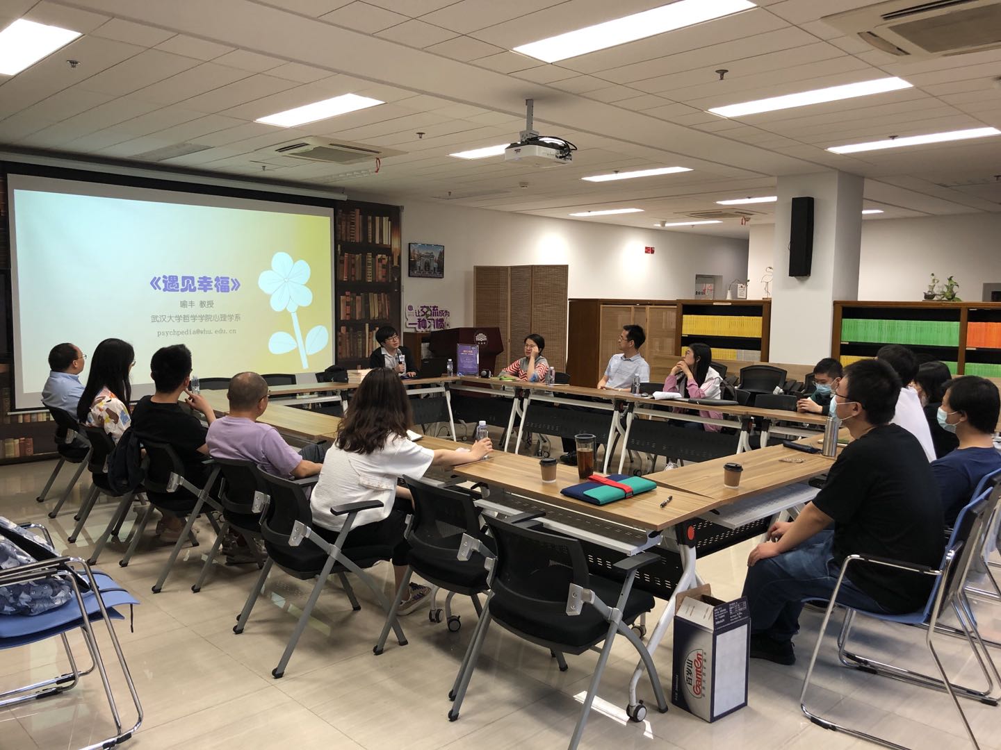 互动环节,到场员工、同学和喻丰围绕心理学与心灵鸡汤、伪心理学的区别、常见的科学的心理学测量方法与量表等问题开展了讨论,在热烈的讨论氛围中,读书会迎来了尾声,喻丰为每一位积极参与讨论的员工和同学赠送了其新著《遇见幸福》,希望大家都能够掌握积极心理学的方法,追求幸福人生。