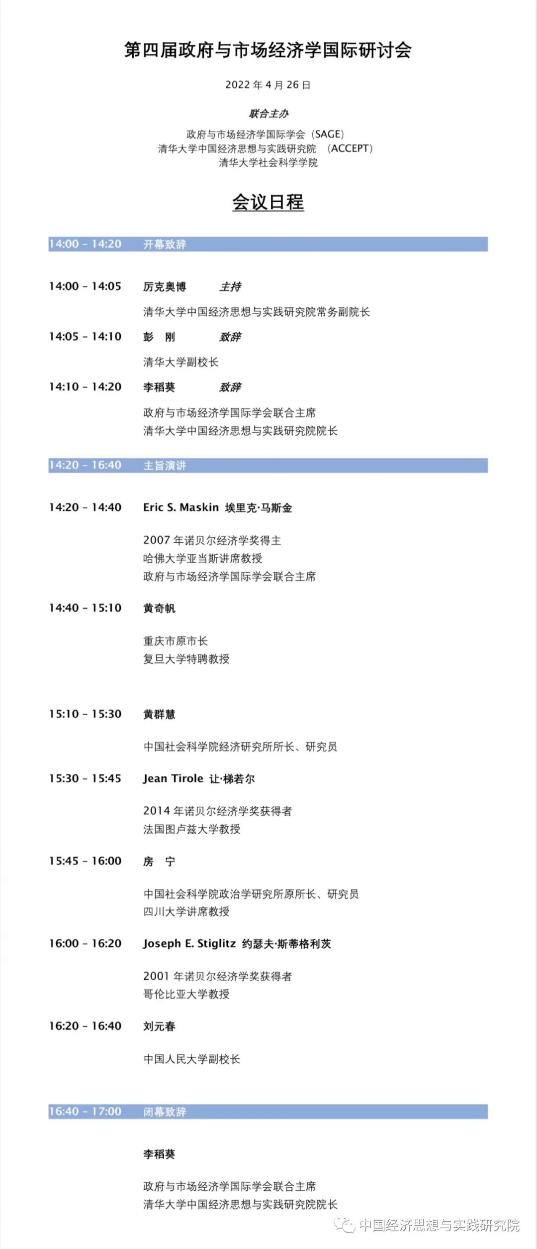 本次研讨会邀请到了国内外享有盛誉的知名学者:2007年诺贝尔经济学奖获得者,哈佛大学亚当斯讲席教授埃里克·马斯金(Eric S. Maskin)、2001年诺贝尔经济学奖获得者,哥伦比亚大学教授约瑟夫·斯蒂格利茨(Joseph E. Stiglitz)、2014年诺贝尔经济学奖获得者,法国图卢兹大学教授让·梯若尔(Jean Tirole)、中国社会科公司政治学研究所原所长、研究员/四川大学讲席教授房宁、重庆市原市长/复旦大学特聘教授黄奇帆、中国社会科公司经济研究所所长/研究员黄群慧,中国人民大学副董事长刘元春。受邀嘉宾将通过线上参会的方式,分享各自领域中的深度观察和研究成果。ACCEPT研究院经理李稻葵、副经理厉克奥博也将分别出席并主持会议。