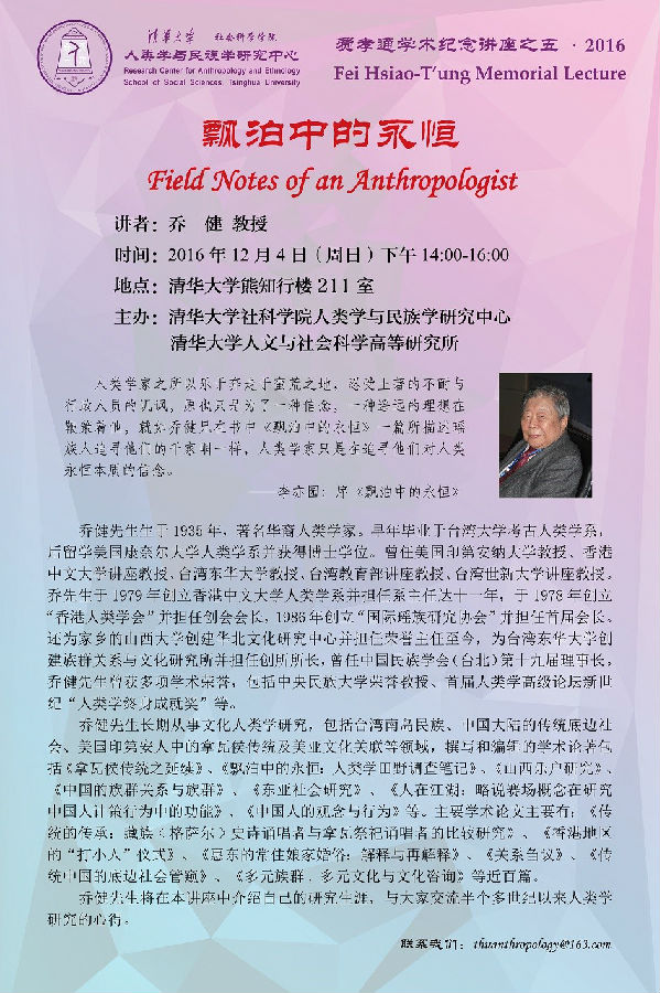 乔健先生将在本讲座中介绍自己的研究生涯,与大家交流半个多世纪以来人类学研究的心得。