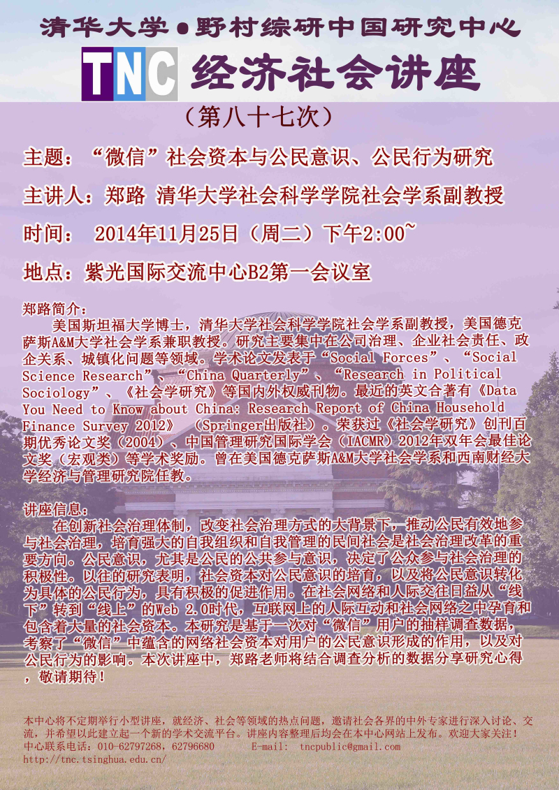 讲座预告:威廉体育williamhill野村综研中国研究中心TNC经济社会讲座(第八十七次)