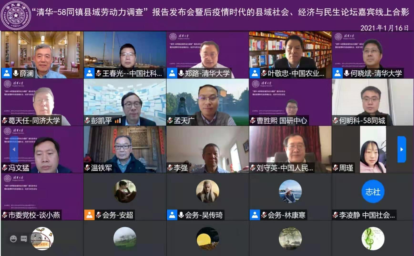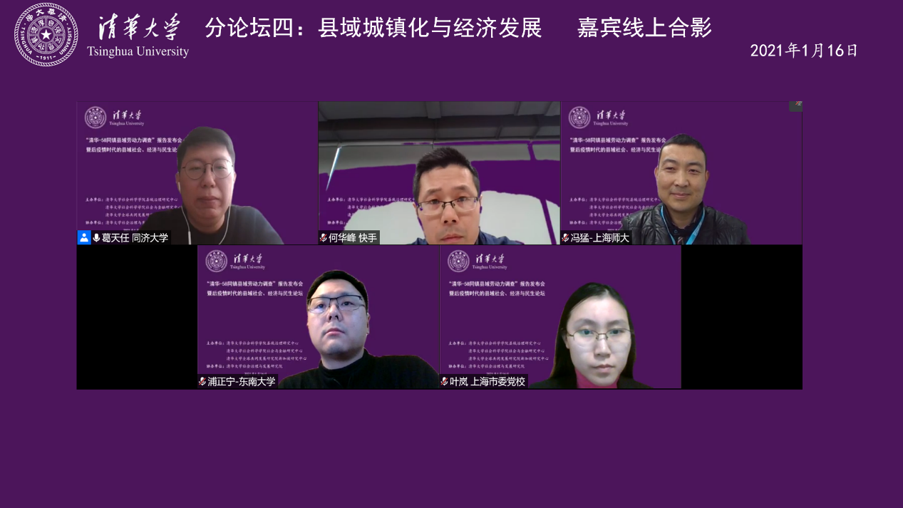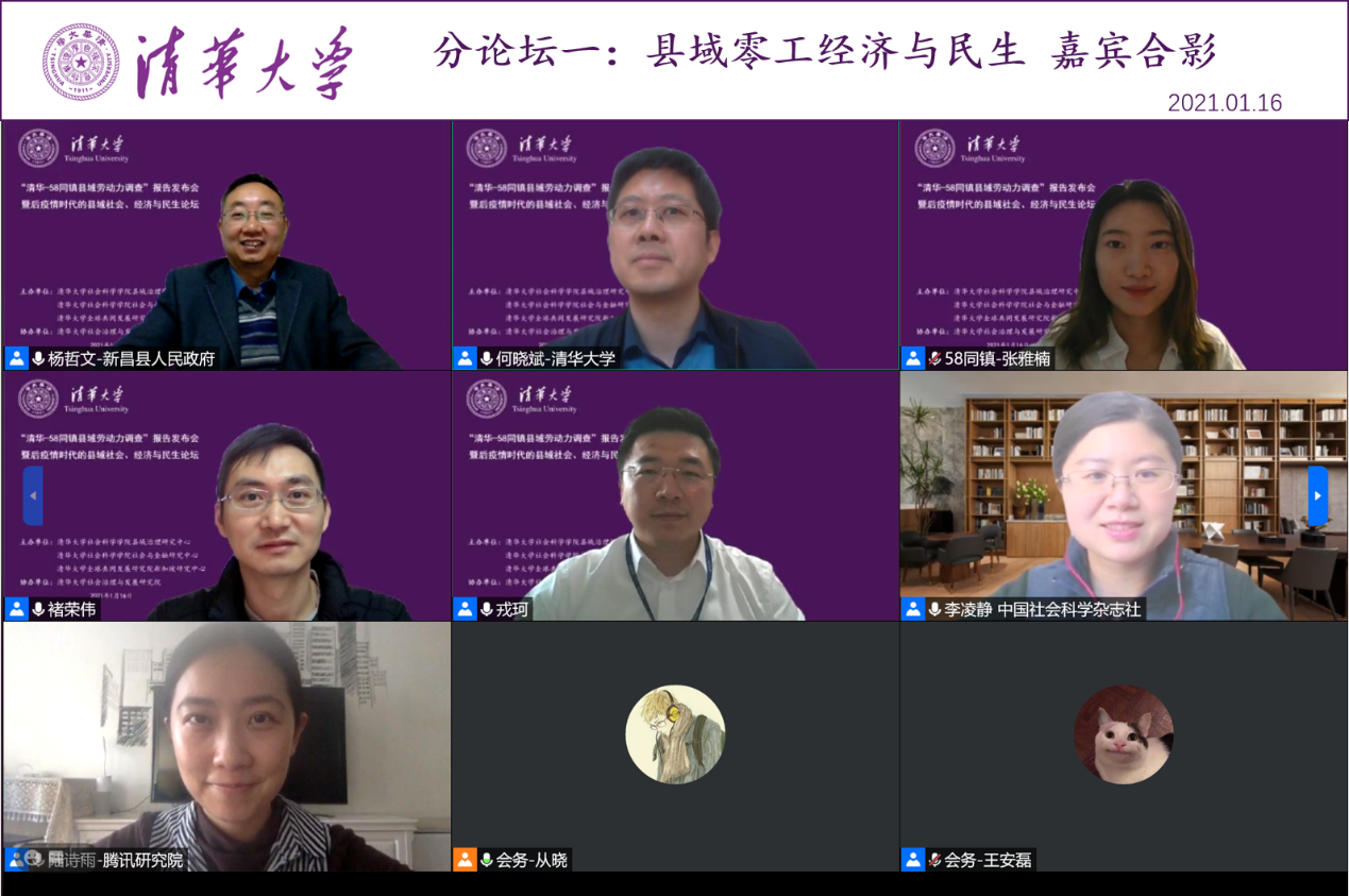 2021年1月16日下午,“清华-58同镇县域劳动力调查”报告发布会暨后疫情时代的县域社会、经济与民生论坛在线上顺利召开。本次论坛由williamhill英国威廉希尔县域治理研究中心、williamhill英国威廉希尔社会与金融研究中心、威廉体育williamhill全球共同发展研究院新加坡研究中心主办,同时由威廉体育williamhill社会治理与发展研究院协办。