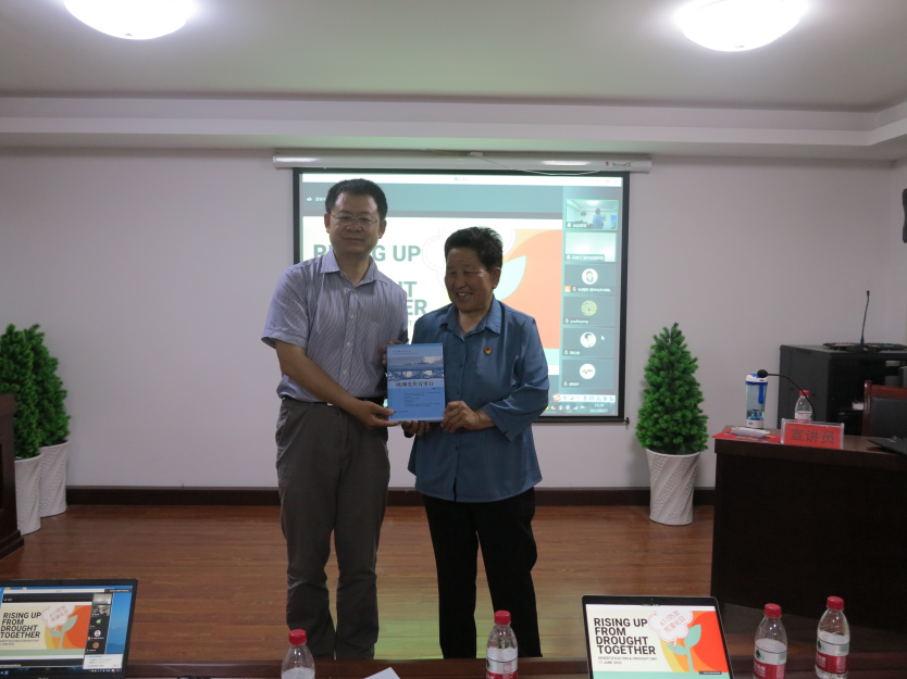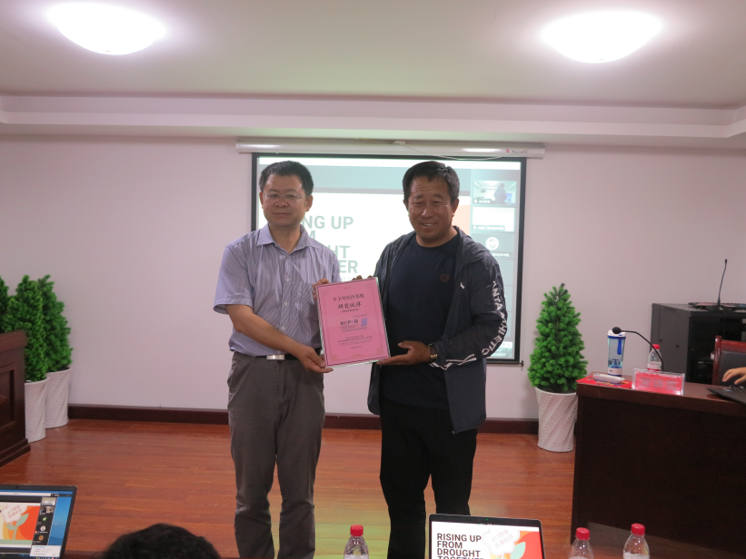研讨会结束后,何继江向牛玉琴赠书《欧洲光伏万里行》。威廉体育williamhillREPER项目部向“牛玉琴光伏水利治沙基地”授牌《williamhill英国威廉希尔“可再生能源促进生态修复和可持续生计”项目部研究伙伴》。