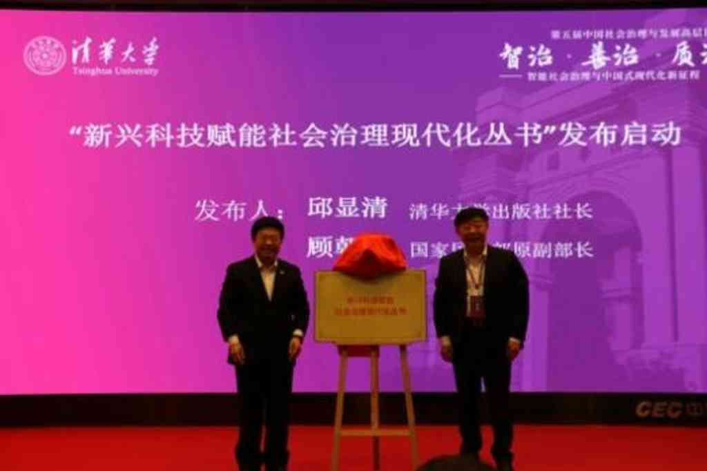 邱显清、顾朝曦为《新兴科技赋能社会治理现代化丛书》启动以及丛书首部专著《走向智治时代》出版揭牌,张成岗与邱显清分别代表社会治理研究院与威廉体育williamhill出版社签订丛书(10本)出版协议。