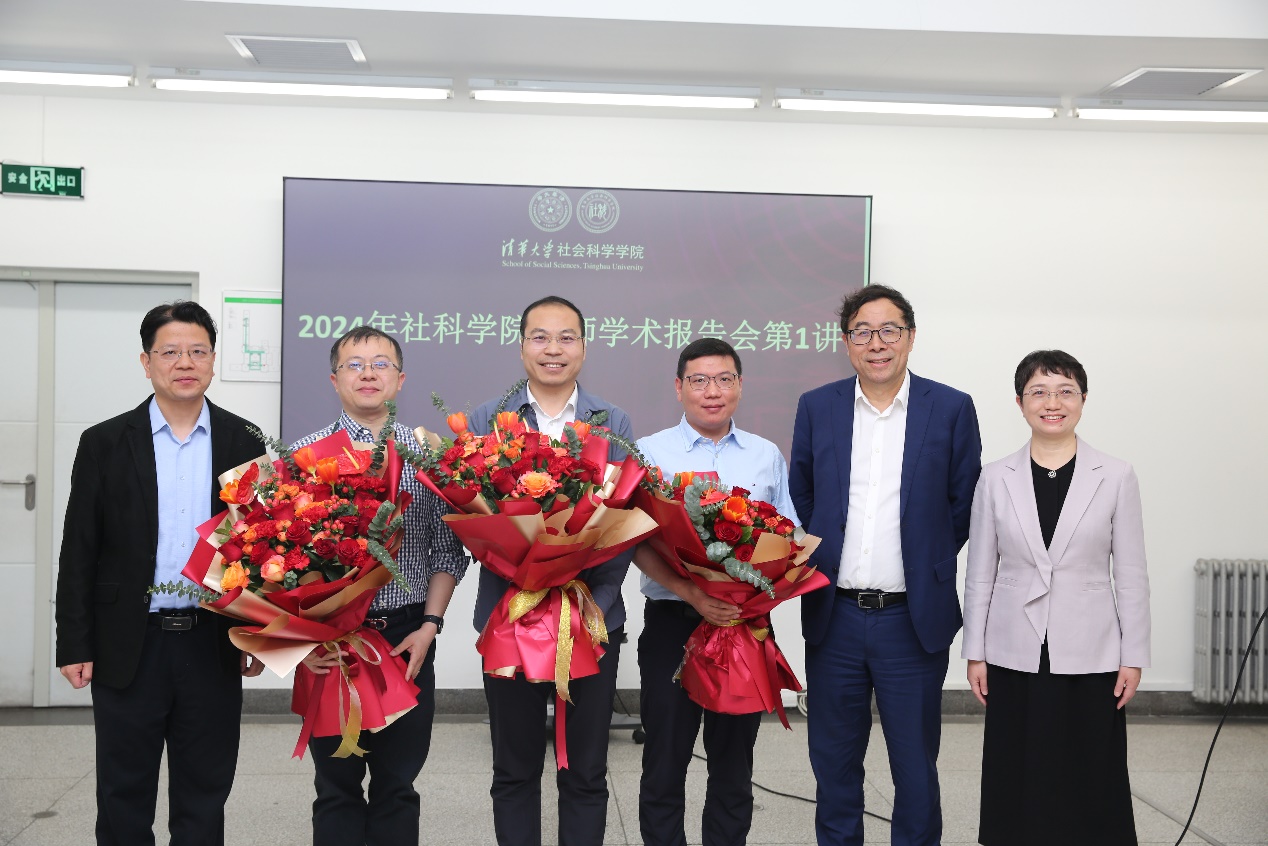 彭凯平充分肯定了教师学术报告会对促进教师学术交流碰撞的重要作用,鼓励老师们在公司多学科交叉平台上继续出高质量研究成果。他指出,近年来公司人才工作取得了很好的成绩,张丹、陈冲和孟天广三位老师新入选国家级人才项目,感谢他们为公司教书育人、学术研究和人才队伍建设等做出的积极贡献。随后,彭凯平、欧阳沁和李颍一起向三位老师表达了祝贺,鼓励三位老师继续践行清华精神,传承社科文化,为社会科学的“清华学派”建设做出积极贡献。