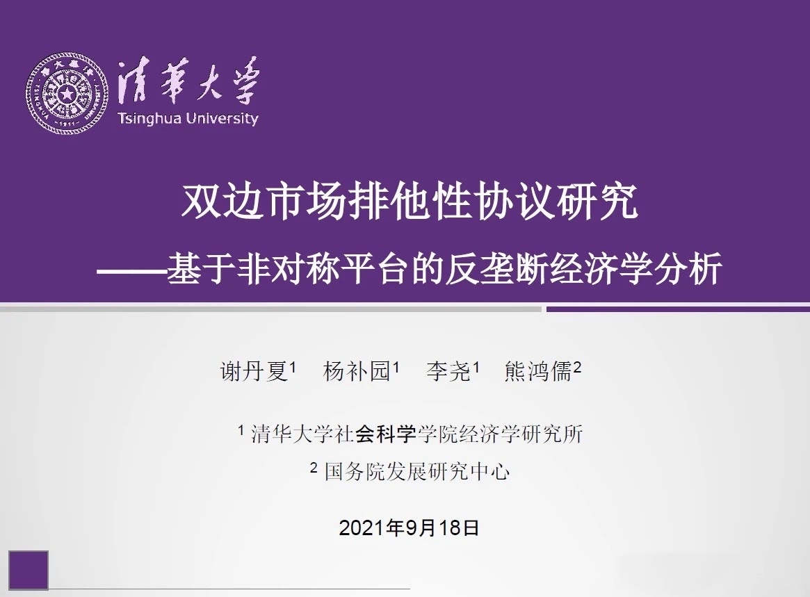 首先介绍笔者研究团队的最新论文:《双边市场排他性协议研究——基于非对称平台的反垄断经济学分析》。该论文获2021年度中国法经济学论坛优秀论文奖。