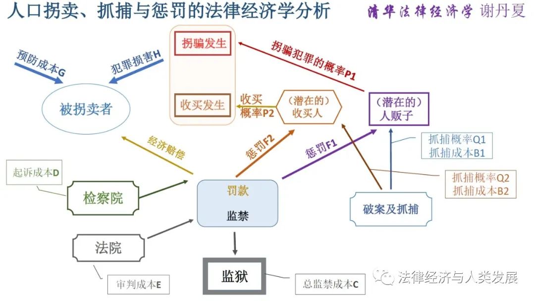 通过上图所展示之简析模型,可以分析人贩子、收买人的犯罪动机,以及惩罚、执法的最优法律政策设计问题。