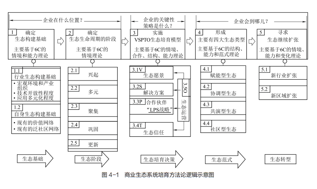 商业生态培育可以是针对企业、行业或者国家机构组织的一项重要战略规划,有针对性地设计、制定并实施商业生态培育决策具体可分为五个步骤。