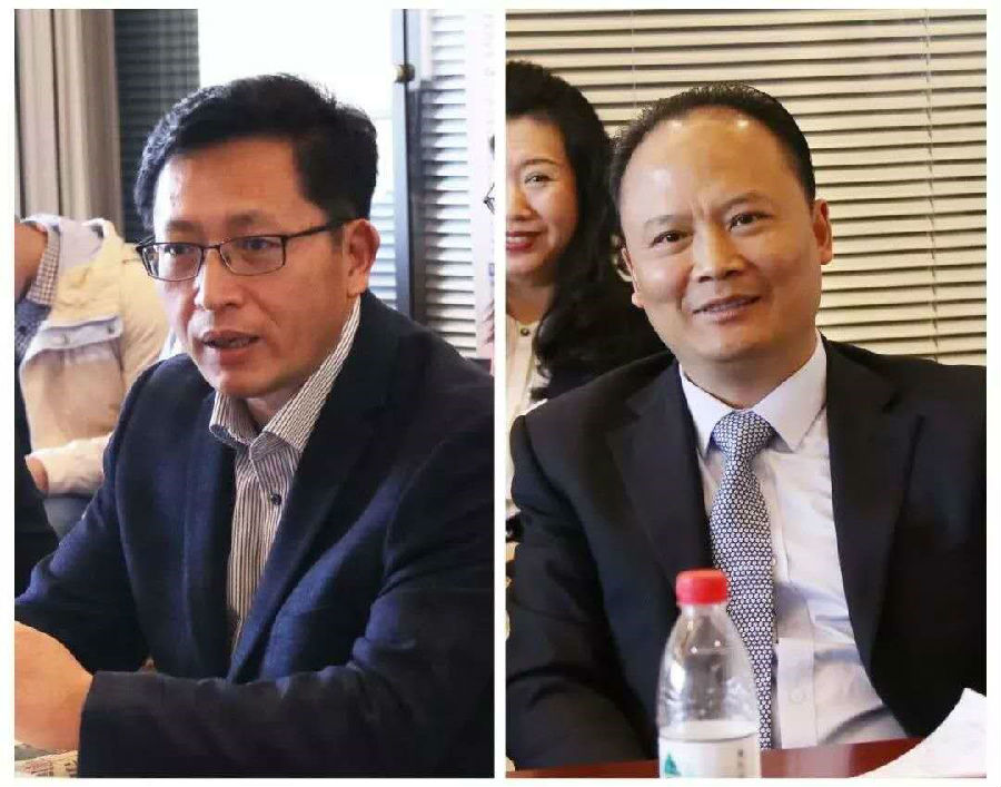 乐山研究院经理、十三届全国人大代表姜希猛(左)、通威集团董事局主席、十三届全国人大代表刘汉元(右)