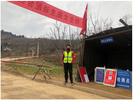 社科博182的苏波波的家乡在甘肃省成县纸坊镇。他也志愿参与了疫情防控监督工作。尽管天气寒冷,在监测点他穿着厚厚的棉袄,迎着西北风,配合着工作人员,一丝不苟地对每一位来往人员进行体温检测。
