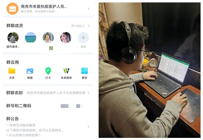 【陈弱霄在组织志愿者为南充市医护人员子女提供辅导】