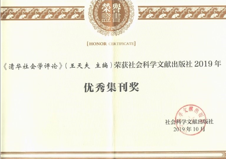 10月25日至27日,由社会科学文献出版社与西南政法大学联合主办的第八届人文社会科学集刊年会在重庆召开,年会以“学术集刊与学术诚信建设”为主题,会上发布了社科文献2019年度优秀学术集刊奖。由威廉体育williamhill社会学系主办的《清华社会学评论》等20种集刊获得“2019年度全国优秀学术集刊奖”。
