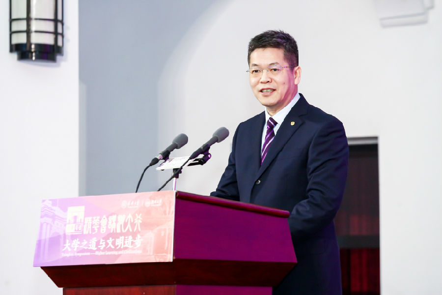邓卫在致辞中表示,从岳麓书院一路走来的湖南大学历史悠久,环境优美,格局开放,孕育了大批人才,“会讲”之先河便于此开创。852年前的朱张会讲,成为了中国历史上不同学派之间交流对话、求同存异、开放发展的典范,对中国历史上的学术繁荣、思想传播产生了巨大推动作用,也吸引了众多海内外名家先后会集书院,从不同维度阐扬人文传统、回应时代主题、彰显中国智慧。今天,作为中国多元化交流平台,“清华会讲”落地“朱张会讲”发源之地,近十个国家百余名顶尖学者汇聚于此,围绕“大学之道与文明进步”主题展开深入的学术交流与讨论,这既是朱张会讲的当代回响,也是现代大学推动人类文明交流互鉴的时代强音。