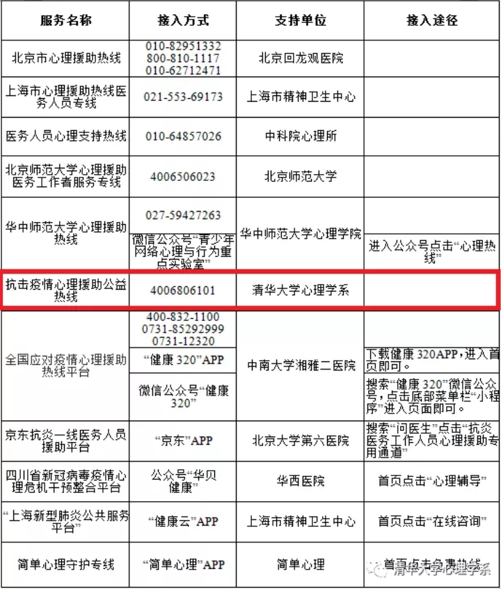并随函提供了国家卫健委推荐的“一线医务人员心理干预热线和网络咨询服务资源”,我系的心理援助热线名列其中。