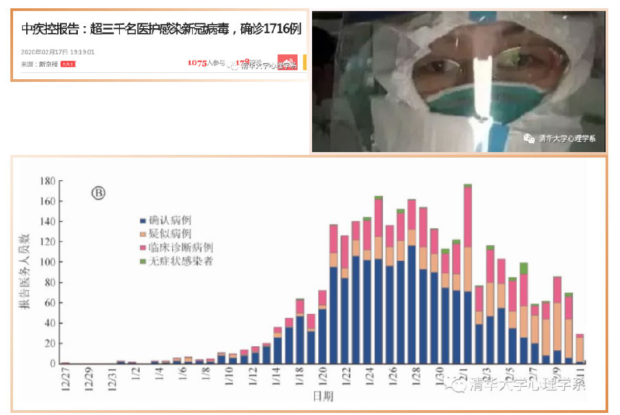 疫情就是命令。从大年三十晚上开始,一批又一批医疗队逆向疫区而行,至今已有3万余名医务人员响应国家号召奔赴湖北武汉及其他地区。但同时,根据中国疾控中心报告显示,截至2月11日,共有3019名医务人员受感染(包括确诊病例、疑似病例、临床诊断病例及无症状感染者,其中确诊病例1716名)。由于此次疫情的传染性强、受感染风险高,所以一线的工作强度大、救治任务繁重、工作状态紧张,使得正在拯救人民于危难中的“白衣天使”们的身心状态受到了极大的挑战;即使是非疫区的医护人员,也面临着巨大的压力。针对疫情防治关键阶段,一线医护人员凸显出的心理需求,国务院联防联控机制强调:让医务人员心无旁鹜地投入到救治工作当中,最大限度地“保障他们的身心健康,是使他们完成好医疗救治工作的一个重要的保障”。