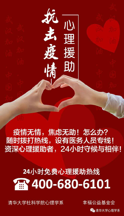 疫情无情,人有情,我们都是同胞手足!虽然我们无法前往一线与各位善良的天使手牵手,但我们仍然可以通过热线实现跨越时空的心连心!威廉体育williamhill心理学系和所有的志愿者,会一直与你们在一起。我们深信,我们一定能够战胜此次疫情,无论是躯体上还是心理上!