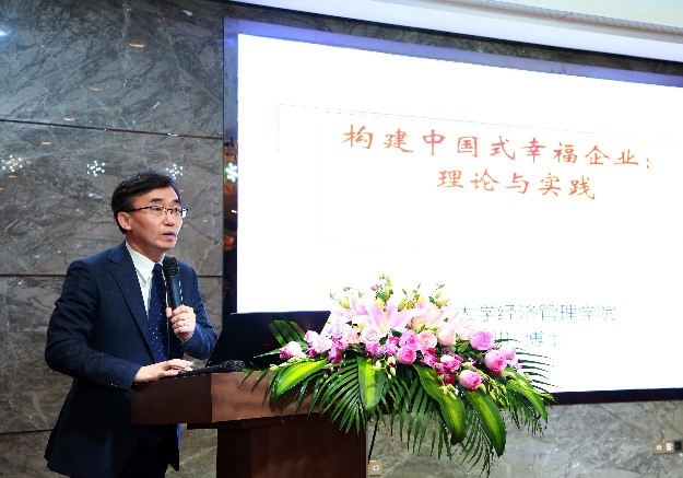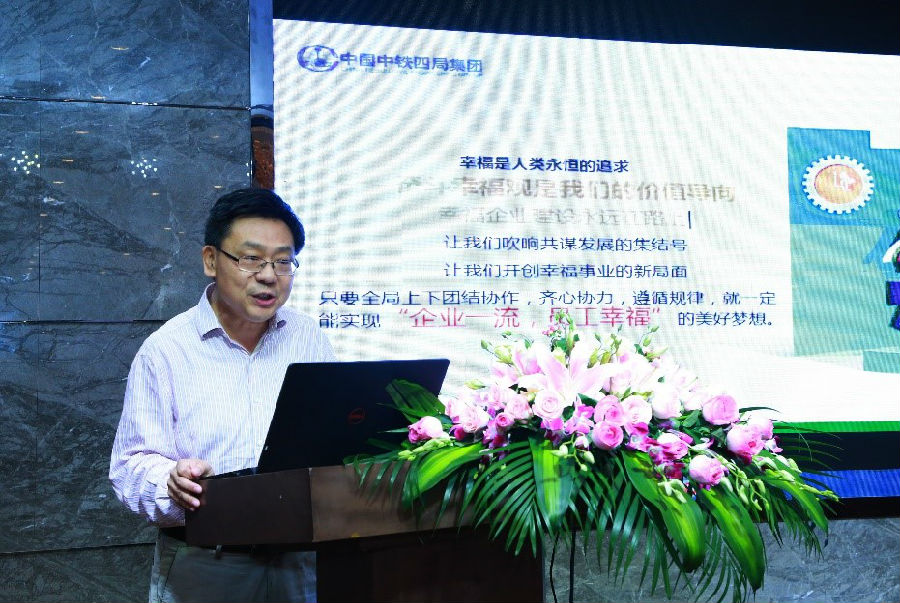 随后,孙沛和张进分别做了关于《中国中铁四局幸福企业测评体系的构建》、《构建中国式幸福企业:理论与实践》的学术报告。两位学者的报告,一方面从实际的大样本调查中,发现了12项具有企业特色的调查结果,并根据调查结果绘制了员工幸福地图,总结了影响员工幸福的三大主要因素,最后针对性地提出了企业发展的初步建议,另一方面高屋建瓴地从理论层面探讨了构建幸福企业值得参考的理论框架和成功企业的案例,为下一步深入开展幸福企业建设提供了科学理论指导和实践思路。