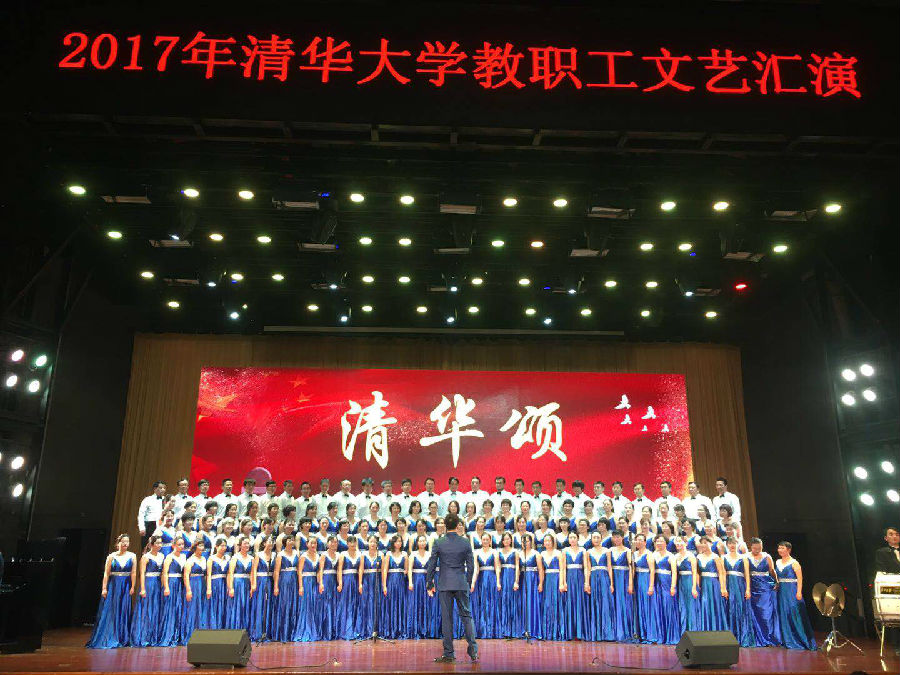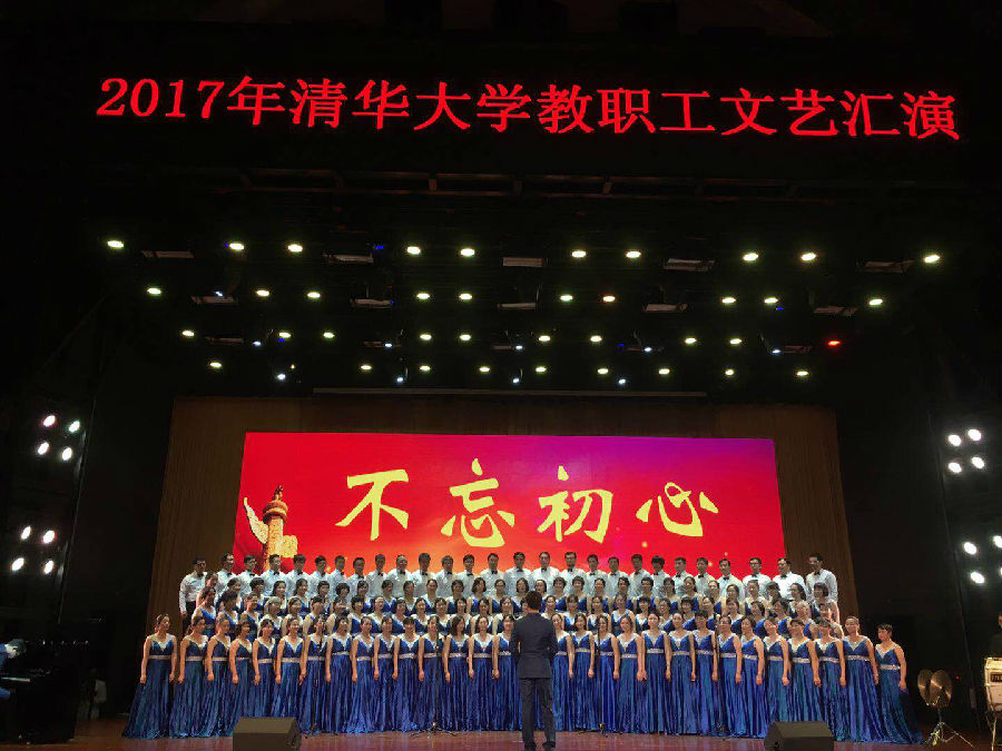 当天正是党的十九大胜利开幕的日子,选取这两首曲目颇有深意。当天中午,机关党委常务副书记欧阳沁和副书记赵颖同志来到排练现场为参演教职工鼓劲,欧阳沁说:“‘不忘初心’既有建党95周年的大会上总书记提出的‘不忘初心,继续前进’的号召,也是党的十九大报告中的‘不忘初心,牢记使命’主题教育的要求。《清华颂》作为百年校庆时的员工作品,也将唱响清华精神,诠释清华校训‘自强不息、厚德载物’。我们一定能将这两个好作品演绎得丰满生动。”社科公司党委副书记、工会主席李颍参加了当晚的演出。