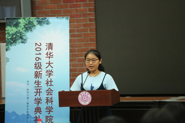 六字班新生张晴同学作为新生代表发言,分享了对清华这个“人生新驿站”的向往和期待,希望一如既往地勤奋学习,积极上进,及时立下长短期目标,用青春书写辉煌明天。
