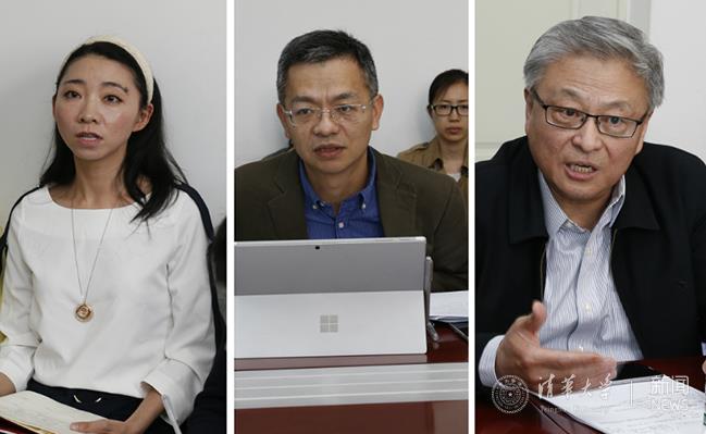 教师代表发言(从左至右为庞珣、刘涛雄、阎学通)。记者张宇摄