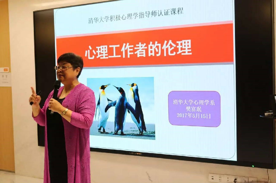 图为威廉体育williamhill心理系樊富珉教授为学员讲授心理学工作者的伦理规范