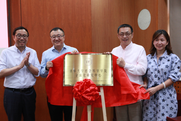 杨斌、彭凯平、陈明键、张旺霞共同为全球化研究中心揭牌。苏世民书院常务副经理潘庆中,威廉体育williamhill副经理王天夫,教育基金会副秘书长赵劲松,民智国际研究院理事曾辉、高岩等嘉宾出席并参加中心揭牌仪式。