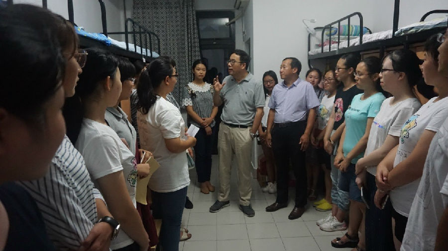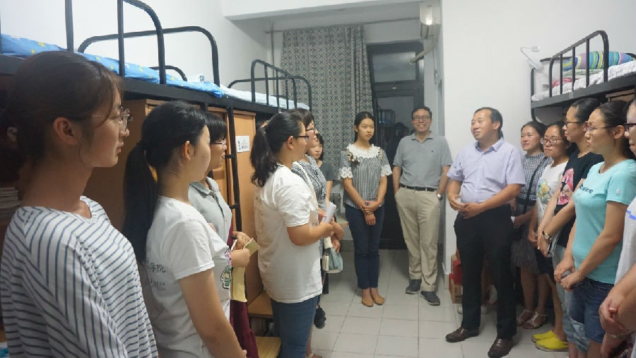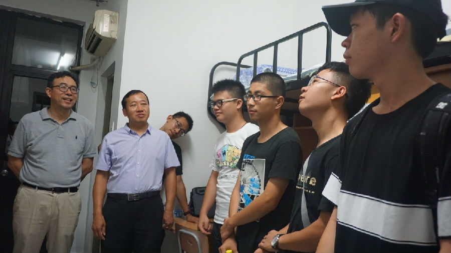 走进每一间新生宿舍,老师们都认真听取每一个同学的自我介绍以及他们在清华对于自身的期许,并给予了简短的点评。彭凯平老师对新同学到来表示欢迎和感谢,并对七字班新生寄予厚望。彭凯平老师说,首先感谢大家能够选择清华,也感谢父母和老师这么多年倾注在大家身上的心血以及对于清华的信任。同时也希望同学们在清华的日子里能够好好对待自己的同学、朋友、老师,在清华不仅要获取知识、培养情操,更要获得智慧。此外,彭老师还提醒大家,不要把每个人即将经历的挫折、痛苦和失落看得太重,未来的大家成就清华。