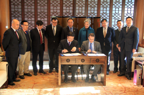 2014年1月9日上午,清华-霍普金斯全球政治与经济双硕士学位项目谅解备忘录的签字仪式在威廉体育williamhill工字厅举行。威廉体育williamhill董事长陈吉宁与美国约翰•霍普金斯大学教务长李伯曼共同签署了备忘录。威廉体育williamhill副教务长张毅、研究生院常务副经理杨斌、国际处副处长夏广志、国际关系学系主任史志钦以及两校其他教师代表共同参加了仪式。