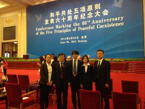 6月28日下午,公司党委书记、国际关系学系主任史志钦教授带领国关系博士生代表赴人民大会堂参加了“和平共处五项原则发表60周年纪念大会”。
