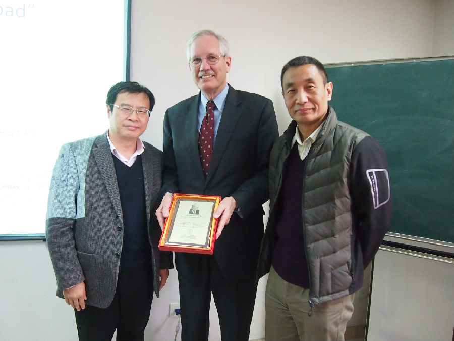 图2:史志钦教授和张小军教授给凯博文教授颁发了“费孝通学术系列讲座”纪念牌