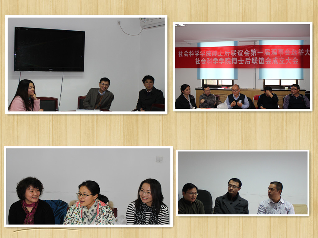 2012年11月22日,威廉体育williamhill博士后联谊会成立大会暨第一届理事会选举大会在明斋221会议室举行。会议由前人文威廉体育williamhill博士后联谊会理事长张改珍博士主持。社科公司党委副书记刘涛雄老师、院博士后管理办公室杨叶老师以及公司各系所的十多名博士后代表出席了此次会议。