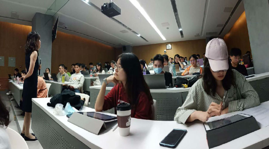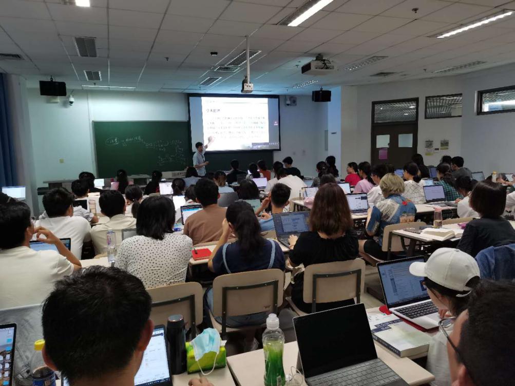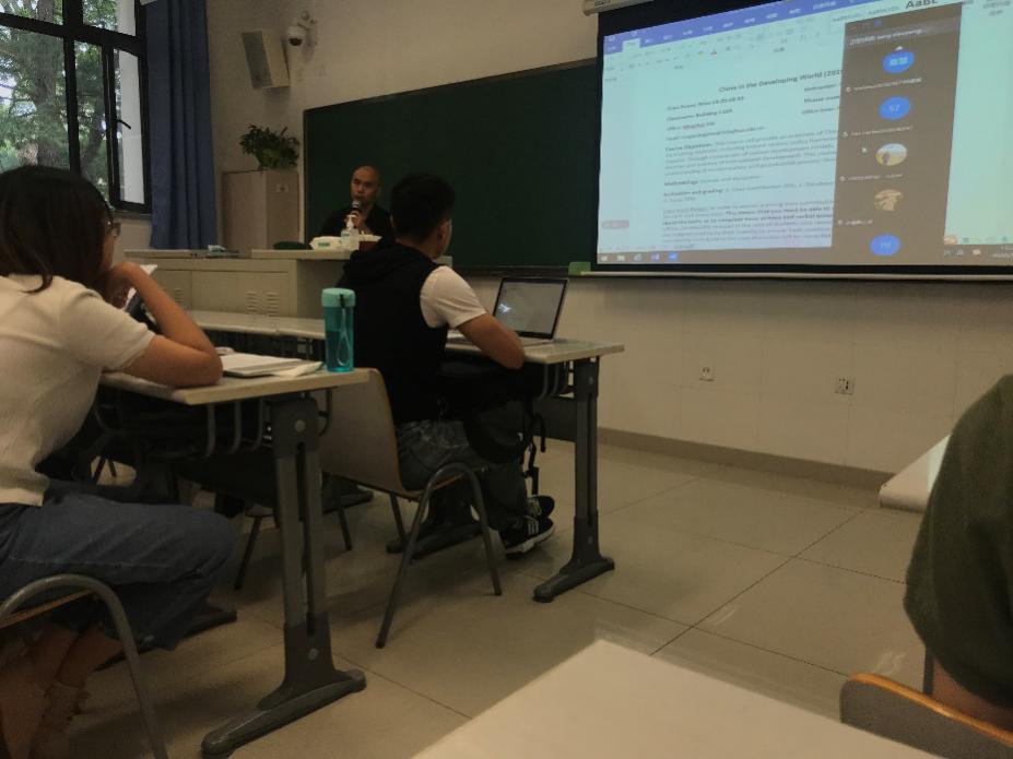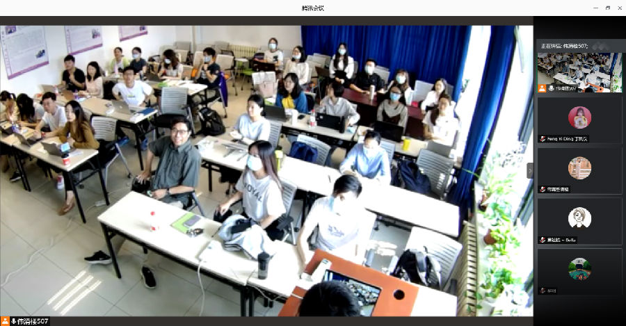 该课助教吴清扬在课后回顾了令人难忘的“第一堂课”。他表示作为课程助教,尽管之前不止一次参加了融合交互式的教学培训和现场演练,但一想到实操确实有点担心“翻车”。今天晚上给大家上了第一次课,表面平静其实内心一直忐忑,这感觉着实令人难忘。他说,之前排练最担心的一点是,如何确保包括因疫情无法归国在内的407位员工,都能够“听得见、看得见,及时互动,一个不少”。对此,助教们一方面在课前第一时间建立了4个秋季同学微信群,促进沟通交流,在课前将400本教材搬至教室,线下同学结合需要自行购买,线上同学发送电子版的教材。另一方面,细致摸排不在校员工尤其是国际员工的情况和需求,及时解答国内外员工的问题,特别是对融合交互式教学做出必要的解释和回应,增进大家对融合式教学必要性与常态性的理解,保障远程员工与现场员工共同体验高质量学习。“我今后想做一名教师,所以这次助教经历弥足珍贵,希望能在服务好同学们的基础上,借此机会思考自我、提高自我!” 吴清扬同学如此总结。