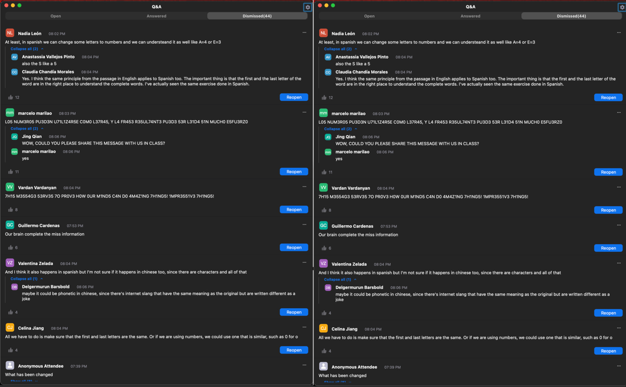钱静熟悉雨课堂和会议系统的各项功能,能够发挥其最大的价值来促进师生、生生互动;线下助教也时刻关注课堂动向,帮助教师调整摄像头、传递话筒等。线上助教在ZOOM的投票、活跃讨论区、鼓励员工打开摄像头能够与线上线下员工“面对面”方面做了扎实的工作。在教师与助教们的通力合作之下,课堂组织非常流畅。